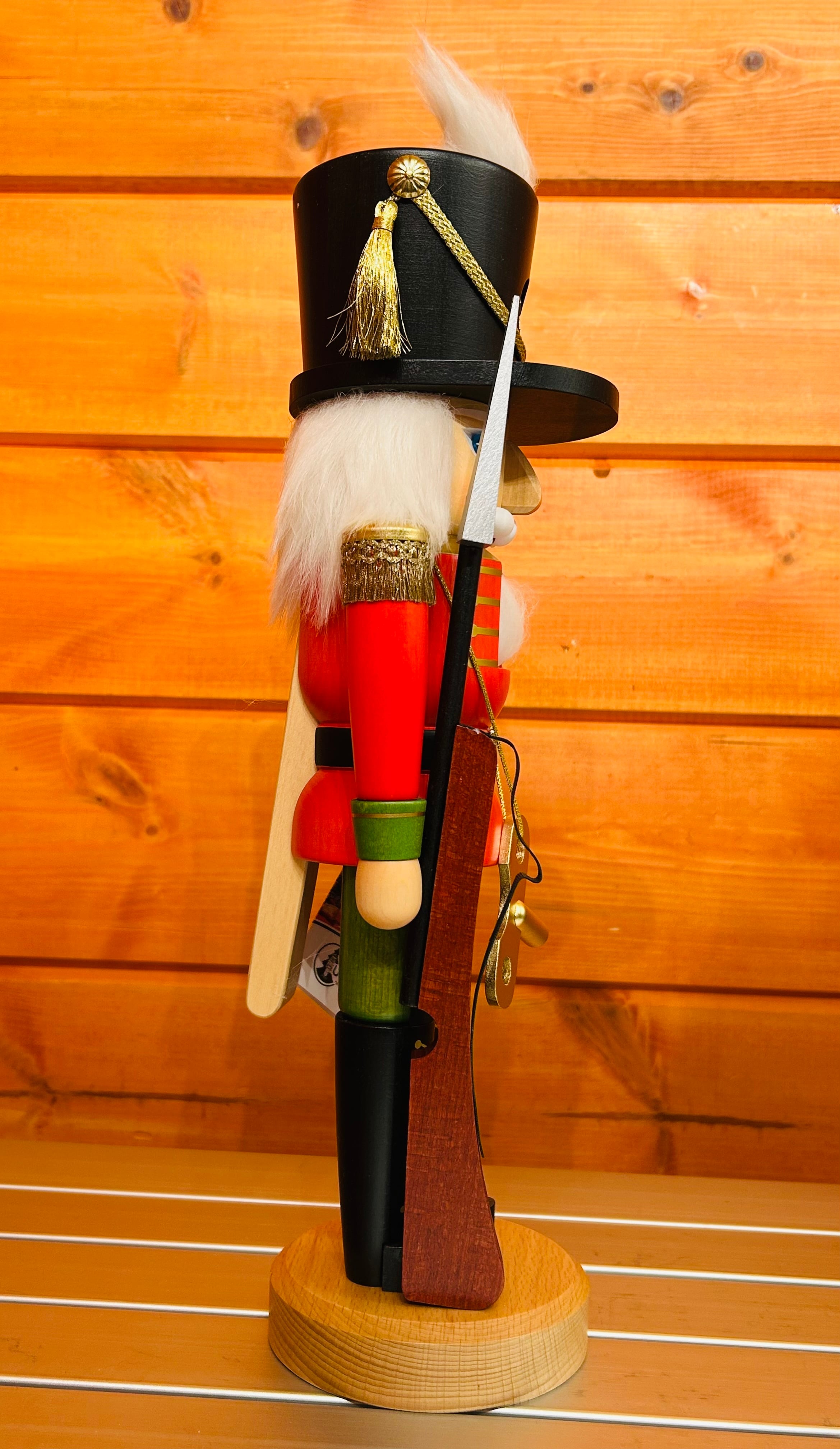ドイツの伝統から生まれた魅力的なくるみ割り人形です。この玩具の兵隊は、特に精巧なデザインと鮮やかな彩色が特徴で、見る人々を引きつけます。クリスマスシーズンを彩るだけでなく、一年を通じてお部屋のアクセントとして楽しむことができます。勇ましい姿勢と愛らしい表情を持ち、どんなインテリアにも華を添えます。
