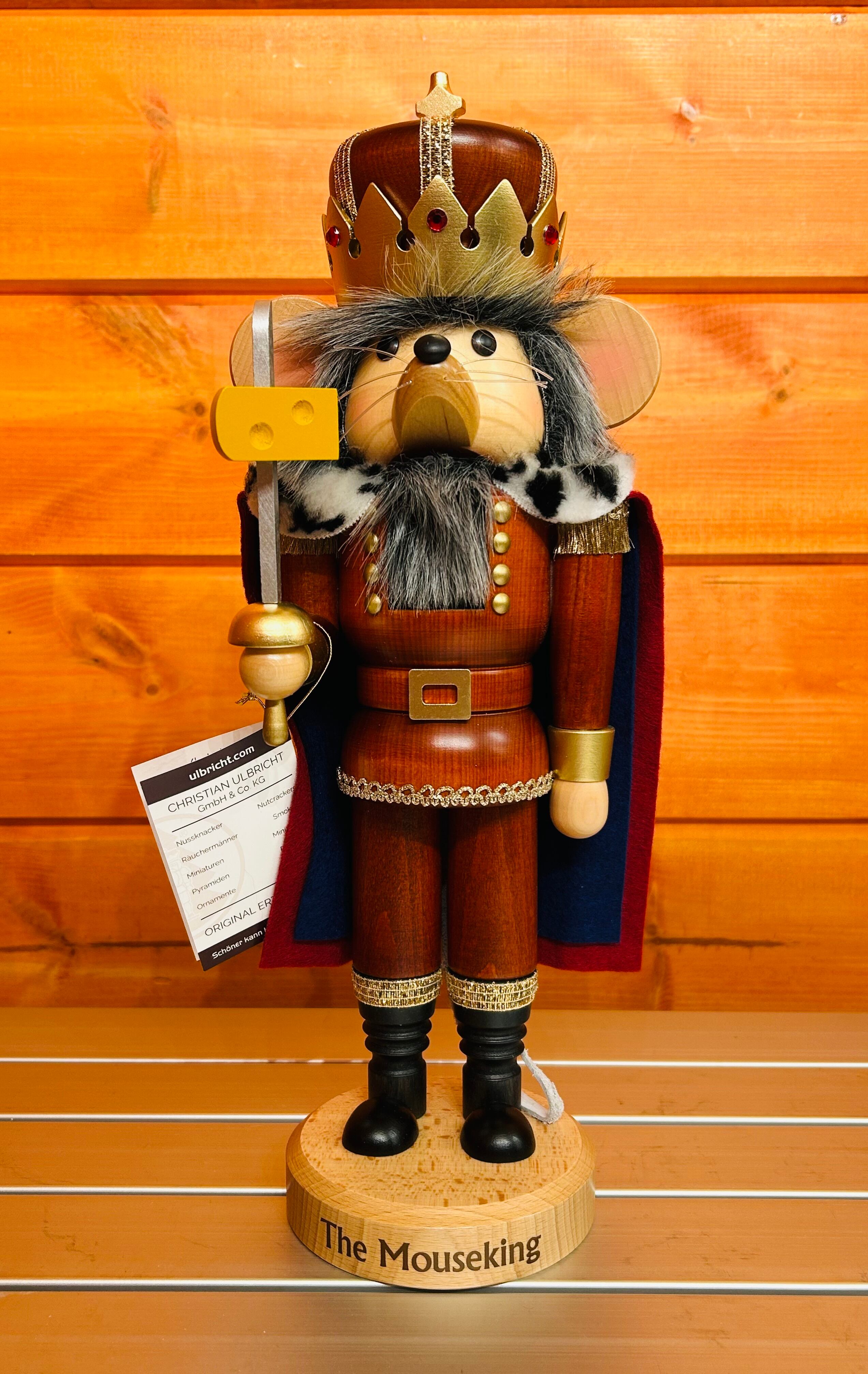ドイツ、クリスチャン・ウルブリヒト社の洗練された「ネズミの王様」くるみ割り人形です。ナチュラルな木の質感を活かし、美しいデザインが特徴です。特に、ユニークな表情と細部にまでこだわった彩色が、見る人を惹きつけます。シーズンを問わずお部屋の雰囲気を一層華やかに演出します。台座とマント付きの特別デザインです。