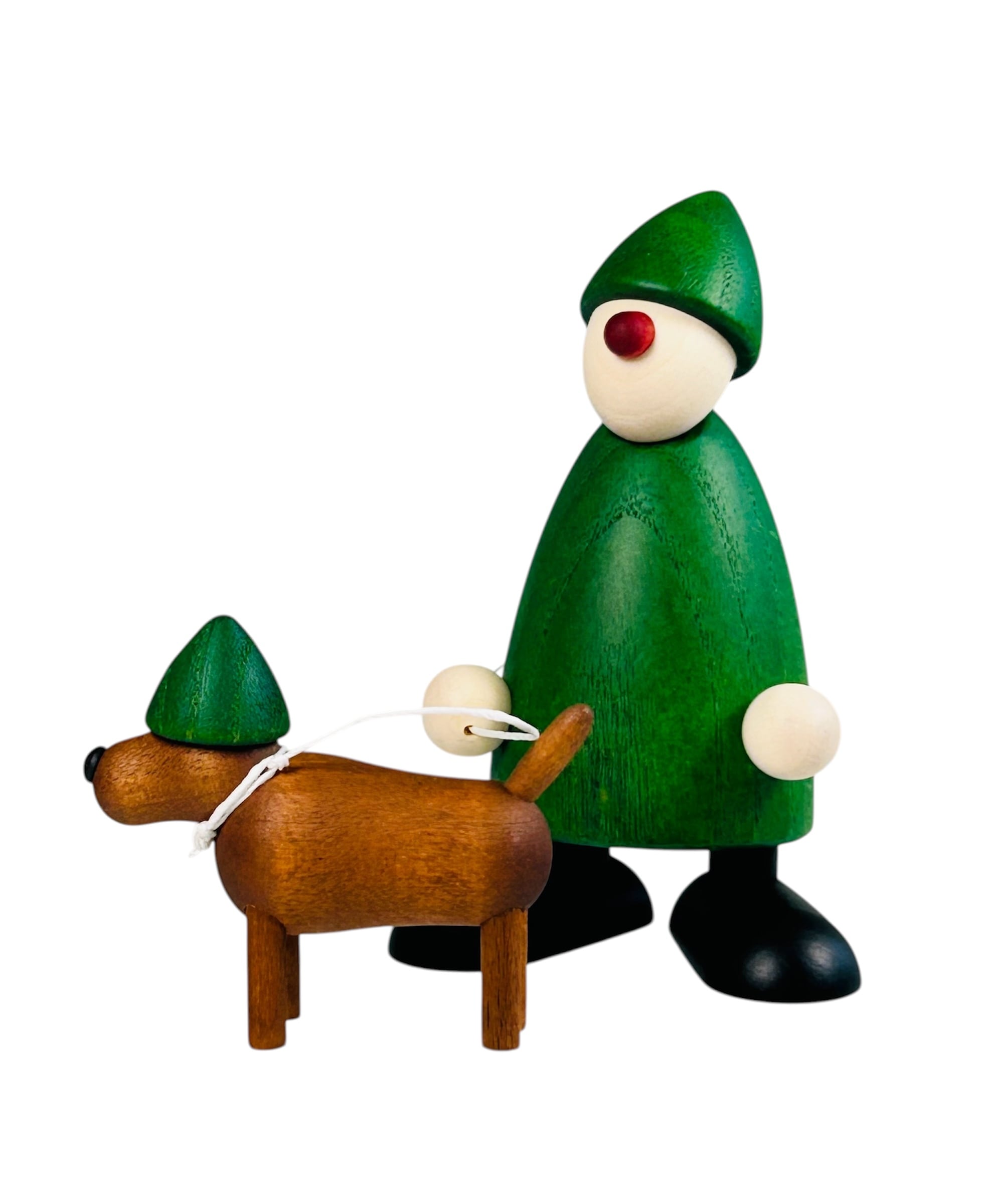ドイツ・エルツ山地の村エッペンドルフに工房を構えるケーラー工房が手掛けた「犬を連れたエミール」です。ころんと丸みを帯びたフォルムと、やさしい色合いが印象的。そばに寄り添う犬が愛らしいアクセントとなり、物語を感じさせる一体に仕上げられています。
