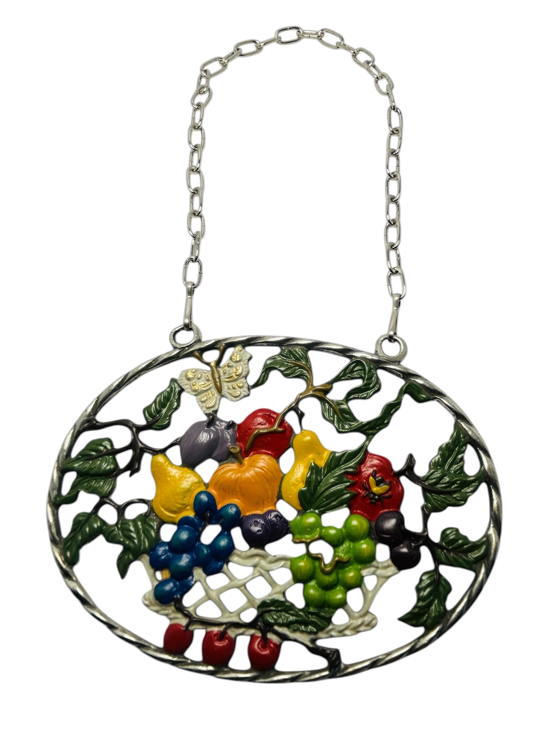 フルーツバスケットをモチーフにした錫の壁飾りです。