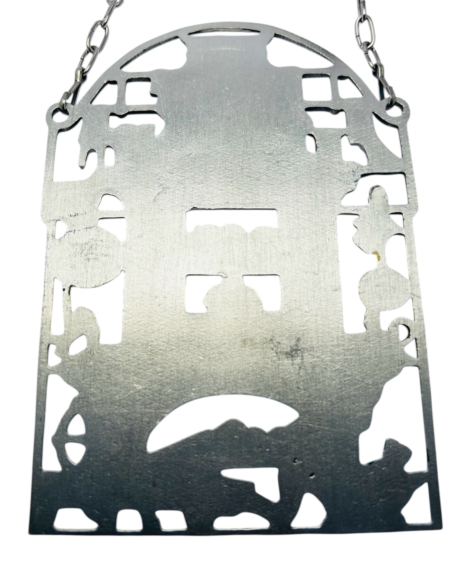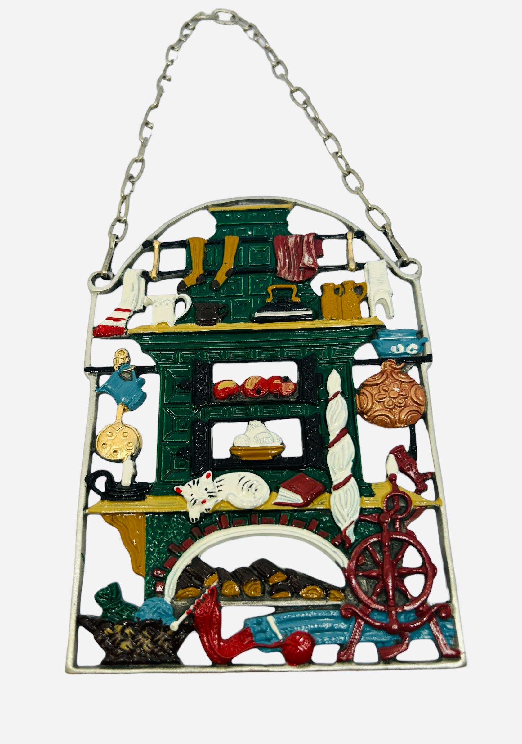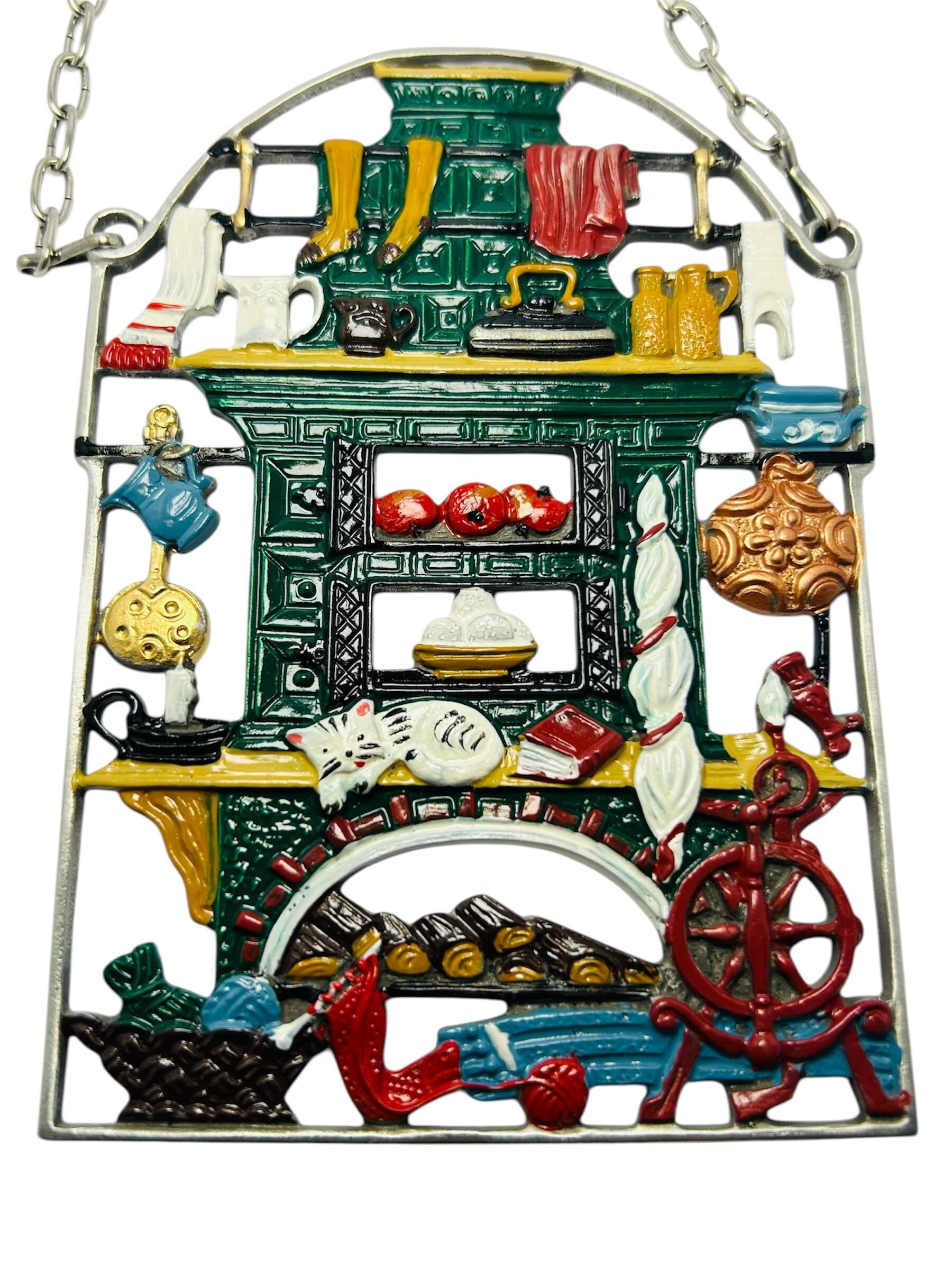 ドイツのタイル暖炉をモチーフにした錫(すず)製の壁飾りです。