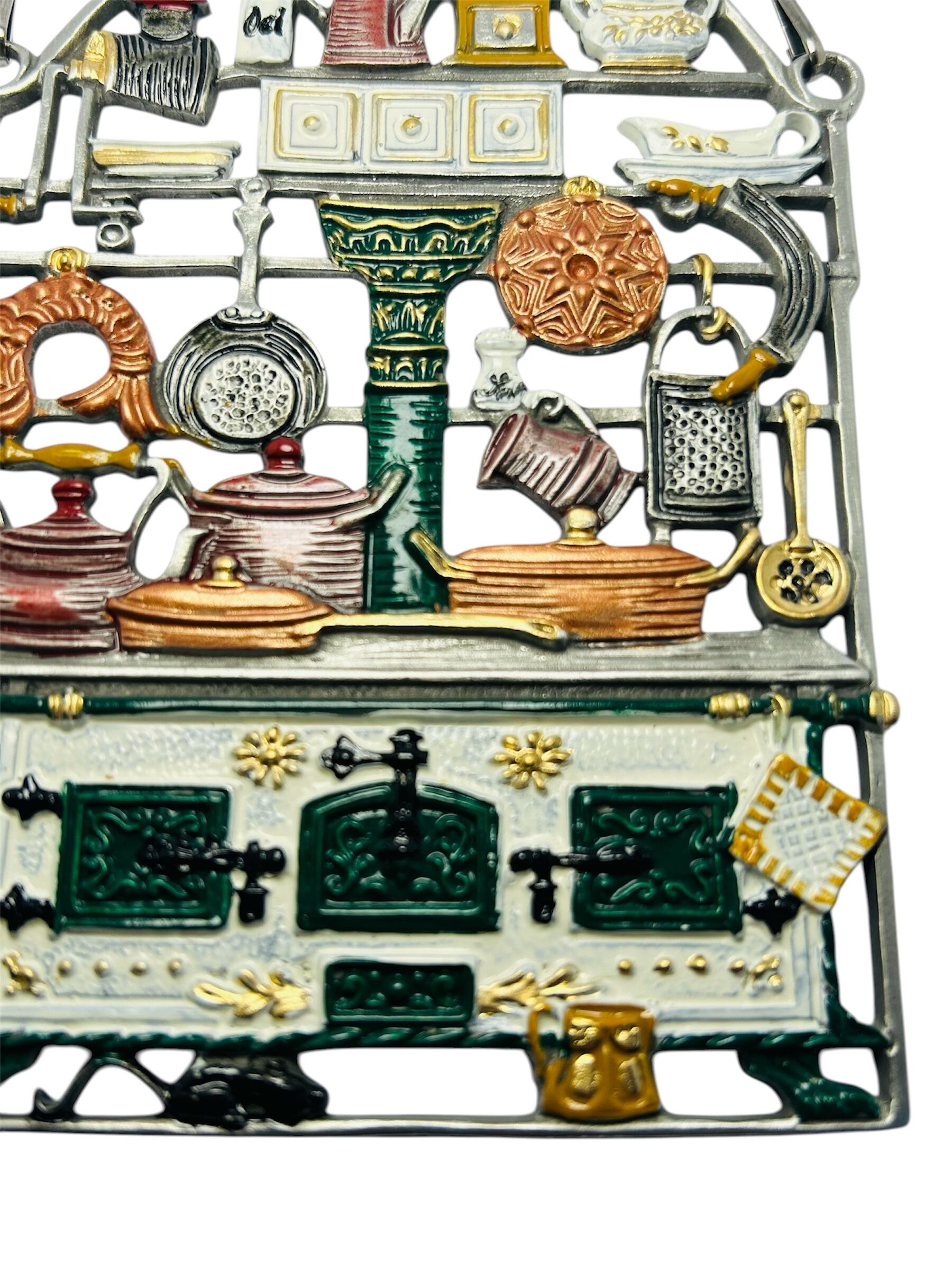 ドイツのオーブン付きキッチンをモチーフにした錫(すず)製の壁飾りです。